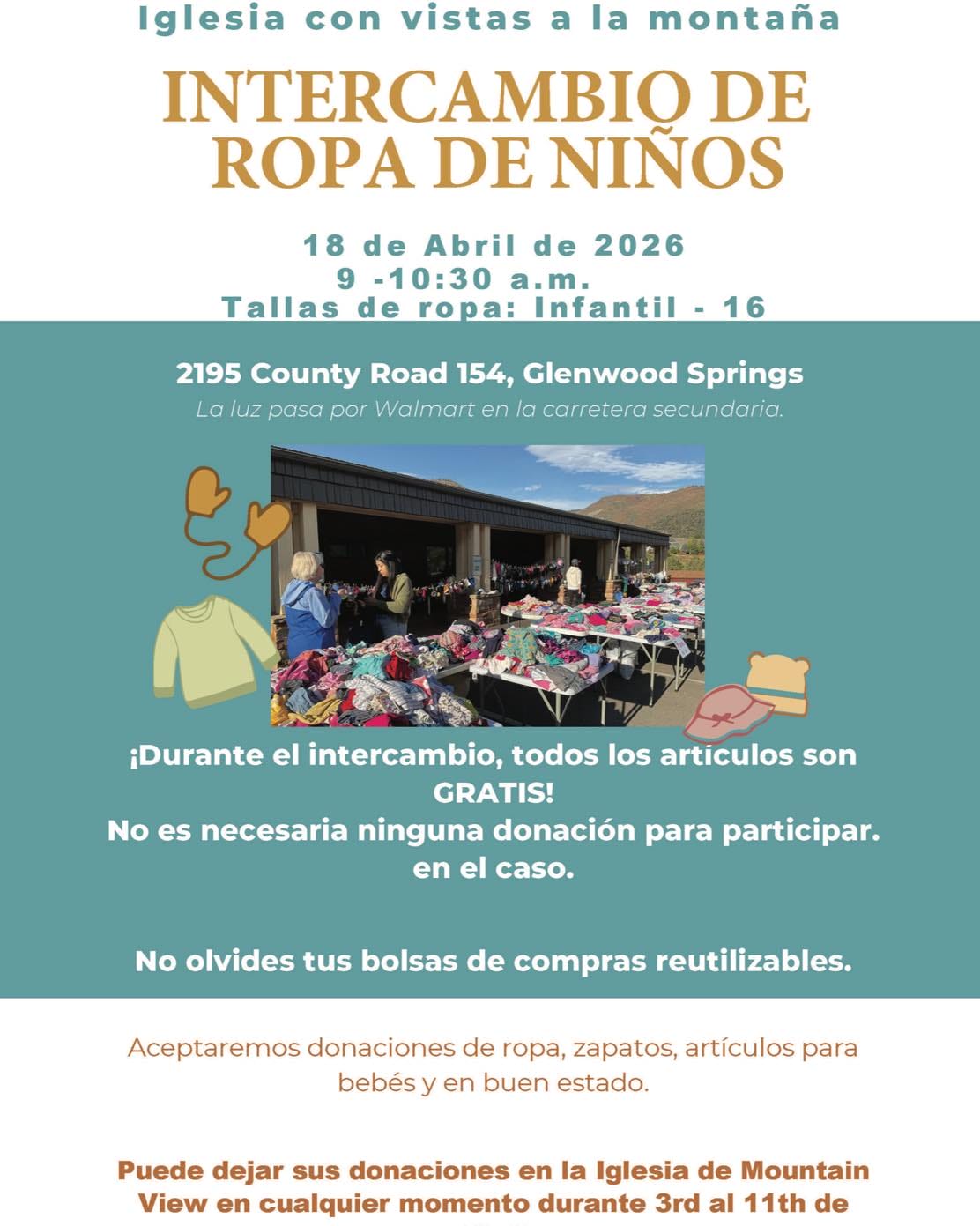 Families who would like to give back can donate clean, gently used children’s clothes and shoes. Donations may be dropped off at Mountain View Church from April 3 through April 11. Events like this work best when the community comes together, and even a small bag of outgrown clothing can make a meaningful difference for another family.